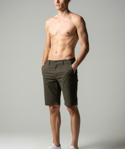 Bermuda Masculina de Sarja com Elastano Cáqui-escuro