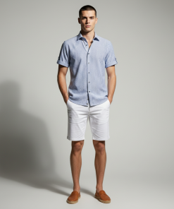 Camisa Masculina de Linho Azul Claro com Botões Tonais