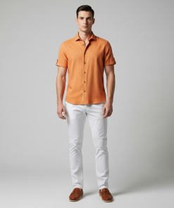 Camisa Masculina de Linho Branca com Detalhes Refinados