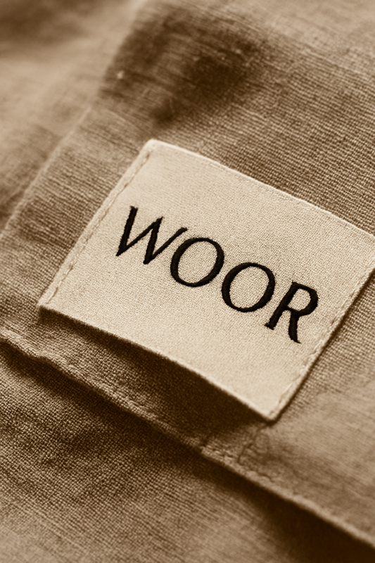 WOOR não é apenas nome. É manifesto costurado à mão, presença que se inscreve na matéria. A etiqueta é o último gesto — e o primeiro sinal.