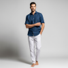 A Camisa de Linho Azul Marinho da Woor é um ícone de elegância tropical. Confeccionada em linho puro, oferece caimento leve, toque fresco e sofisticação discreta. O tom azul profundo reforça a proposta clássica e versátil, ideal para composições com calças claras em momentos especiais.