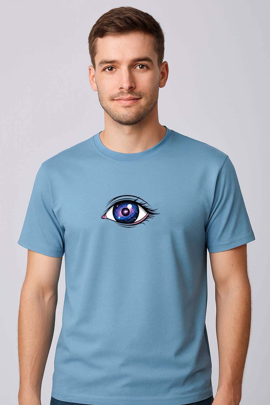 A Camiseta Olho Cósmico da Woor traduz um visual moderno com toque conceitual. A estampa frontal remete a uma mandala ou constelação abstrata, com formas geométricas simétricas que criam um efeito visual impactante e sofisticado. Ideal para quem busca um estilo minimalista com personalidade.