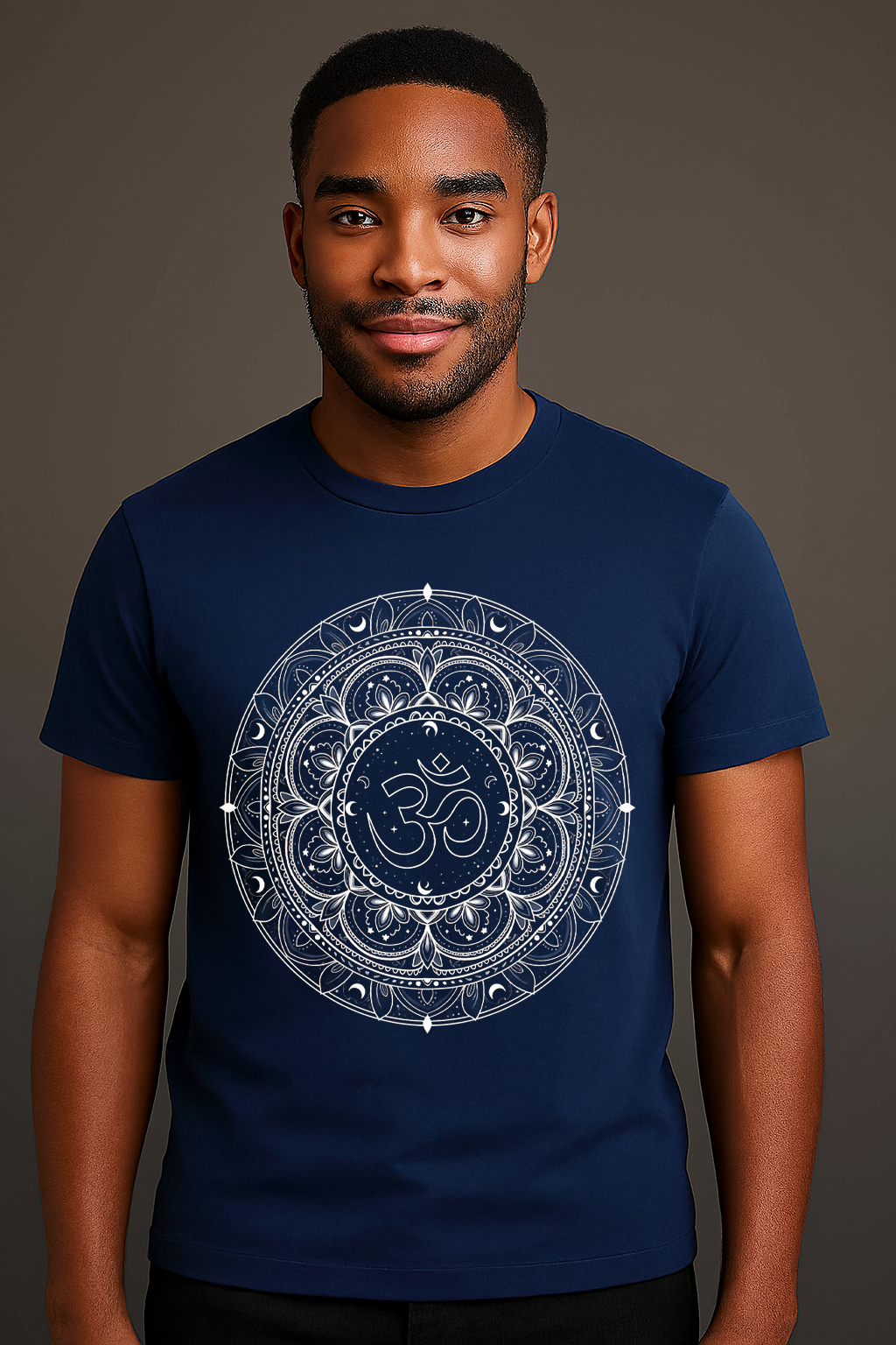 A Camiseta Om da Woor traduz um visual moderno com toque conceitual. A estampa frontal remete a uma mandala ou constelação abstrata, com formas geométricas simétricas que criam um efeito visual impactante e sofisticado. Ideal para quem busca um estilo minimalista com personalidade.